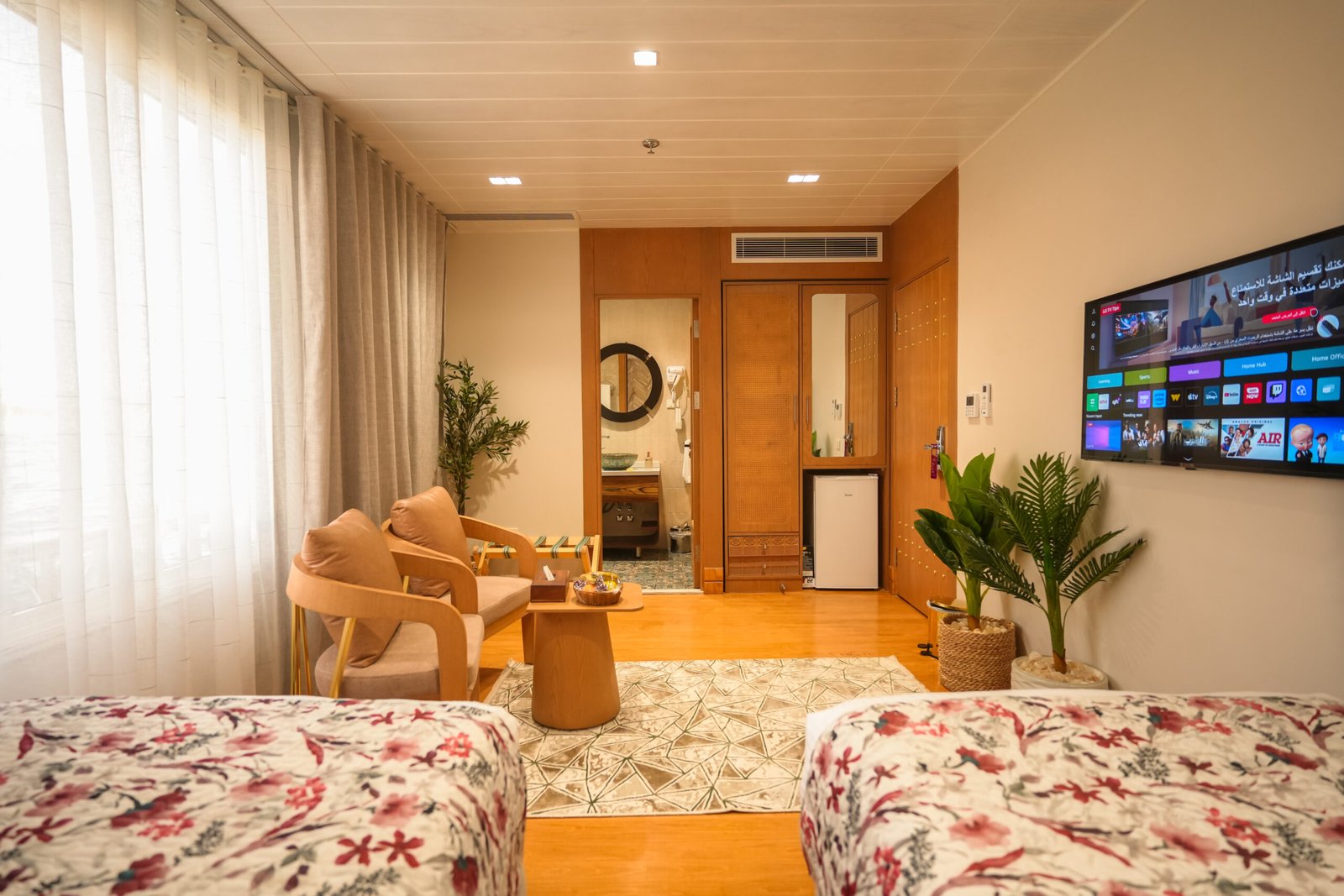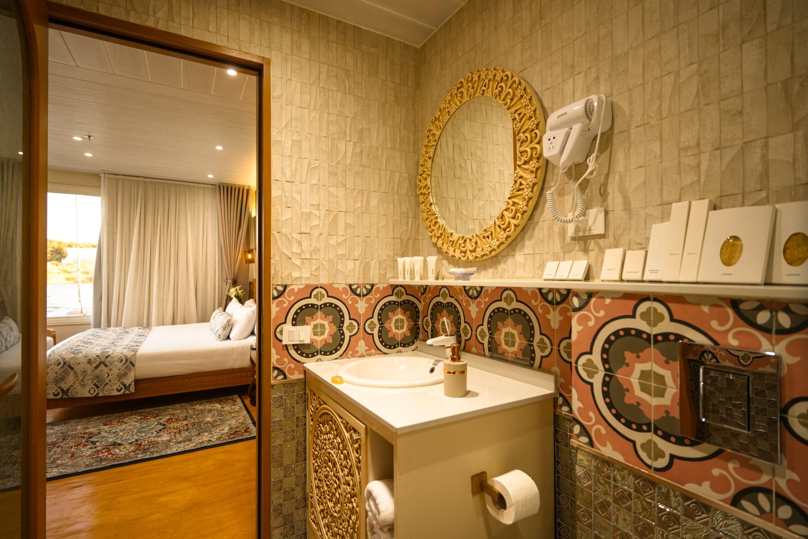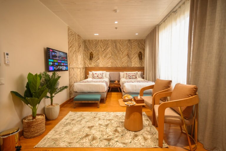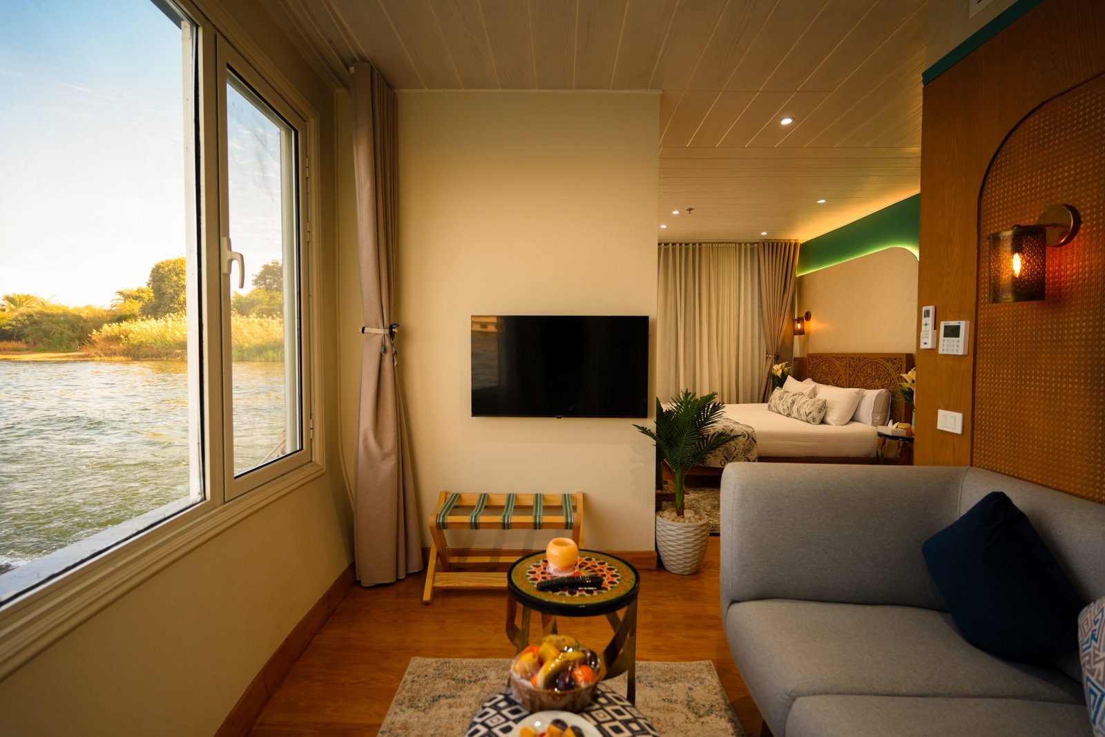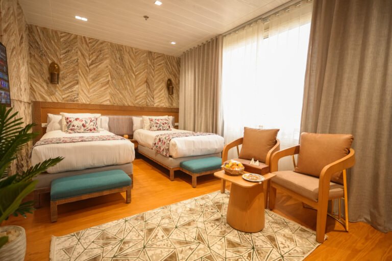 Perfect for travelers sharing a space, the Twin Bed Suite offers two separate beds without compromising on luxury. Thoughtfully designed with warm wooden accents and stylish decor, this suite provides a cozy yet refined retreat with stunning Nile views.